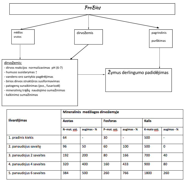 Kartoti procedūrą nuo 2 iki 4 kartų per metus – po 20–25 litrų „ProBios“ 1 hektarui žemės.